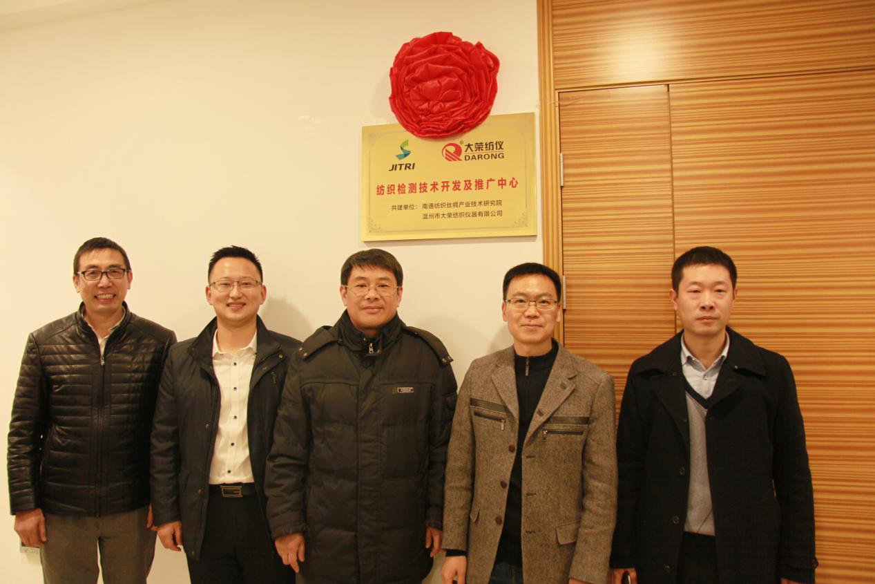 参观期间,中国纺织工业联合会科技发展部孙锡敏副主任、张放军处长共同为研究院新建“纺织检测技术开发及推广中心”揭牌。“纺织检测技术开发及推广中心”是在中纺联科技发展部的大力支持下,由研究院与温州市大荣纺织仪器有限公司共同建设,落户南通,旨在贴近企业,提供最新纺织检测技术开发与设备应用服务。