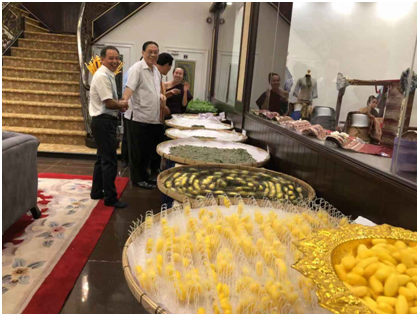 2018年11月16日至22日,应老挝有关方面邀请南通纺织丝绸产业技术研究院“高效集约化现代养蚕关键技术转移转化示范项目”暨“中老绿色丝绸中心蚕桑示范园”项目组参加了老挝一年一度的塔銮节盛会。塔銮节是老挝万象市规模最大、场面最隆重的传统宗教节日。项目积极响应国家“一带一路”战略倡议,发展新“丝绸之路”。通过以饲料代替新鲜桑叶养蚕,节约人力成本,提高桑蚕养殖的生产效率,在国内外率先实现养蚕现代化的转化示范,也为国内蚕桑丝绸生产拓展建立海外桥头堡。《中老绿色丝绸中心蚕桑示范园》位于老挝国首都万象市塞塔尼县萨帕卡农村(Saphakhanong village, Xaythanydistrict, Vientiane municipality),占地约10公顷,由米兰app官方官网、老挝女双手公司、苏州大学和老挝国家科技部等单位合作共建,并得到老挝苏州大学等单位的大力支持。 中方融合了传统技艺与现代科技的“江苏现代蚕桑生产过程”展厅,吸引了众多市民参观。