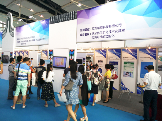 2016年中国创新创业成果交易会(以下简称“创交会”)于5月27日在广州琶洲展馆开幕,展区面积超2万平方米,汇集了来自欧盟、港澳台、大陆等1700多个高校、科研院所、科技型企业的创新创业成果项目。我院科研发展部携孵化企业——江苏纳盾科技有限公司、南通百博丝纳米科技有限公司、苏州福兴纳米科技有限公司、苏州苏豪生物材料科技有限公司参展。
